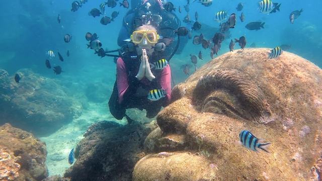 3.古村落深潜30分钟(全程教练一对一带领、潜水半面镜、赠送价值30元一次性咬嘴、潜水BCD装备)