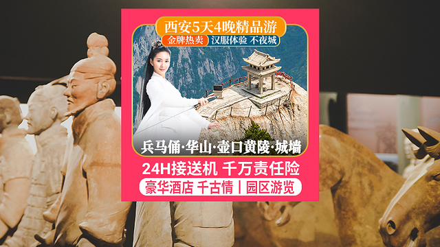 2、兵马俑+华清宫(华清池+骊山一票通)+大慈恩寺+壶口瀑布+城墙+黄帝陵轩辕庙+华山;
