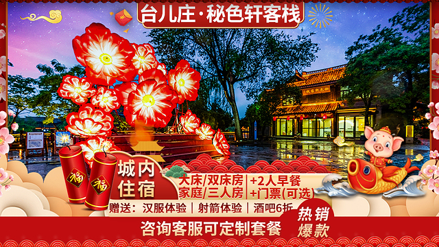 【费用包含】2~3张台儿庄古城门票(标间/大床/亲子间包含2张门票,三人间包含3张门票);