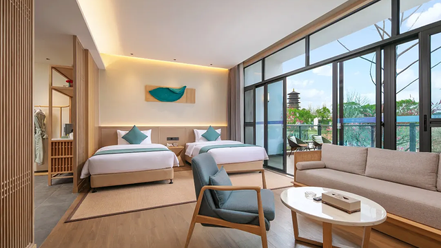 双人套餐4:茶圣奢野度假酒店:独栋双床房1晚+婺女洲门票2张+童趣馆2人+早餐2份+观光车免费乘坐无数次+免费停车