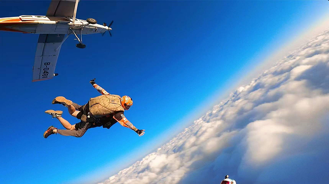 第4步:出舱。到达指定高度后,飞行员会配合跳伞教练选择合适的出舱位置,然后教练带着你一起用帅的姿势飞出去。