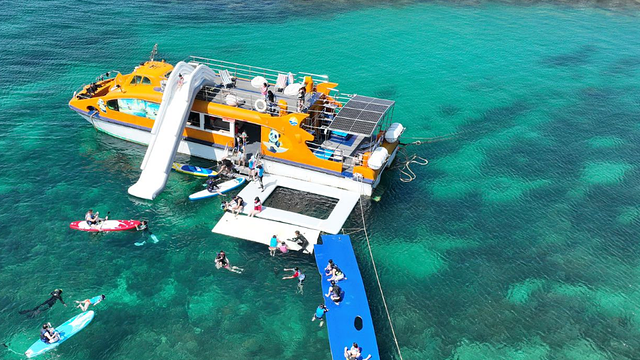 1、欢乐号游艇体验(约120分钟,含讲解) 2、分界洲岛景区门票 3、 珊瑚礁自由浮潜(赠送鱼饲)4、 配备(浮潜半面镜+-次性咬嘴+救生衣5、 桨板竞技、海上滑梯、海上泳池 6、水枪激战、海上浮毯、浮台