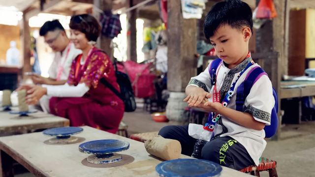 近距离接触大象,与母子象亲密互动;可体验制陶、造纸、刻写贝叶经等非遗文化;