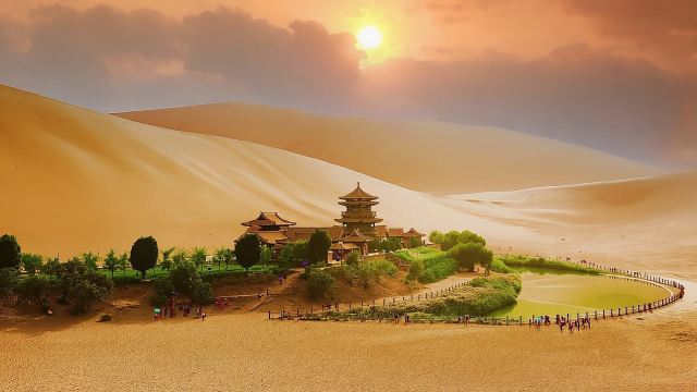 【鸣沙山月牙泉+莫高窟|日落8人-鸣沙山门票+敦博讲解 | 拼团 | 8人及以下团 | 司机兼讲解|中文|9座小巴】