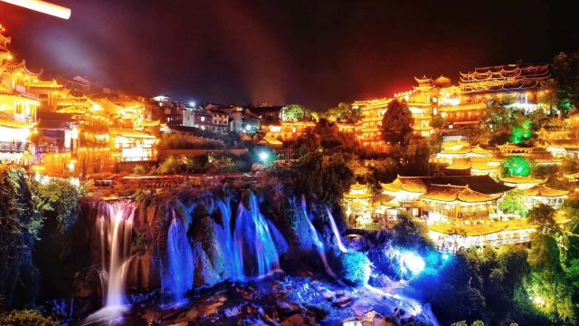 “挂在瀑布上的千年古镇”芙蓉镇--夜景芙蓉镇!