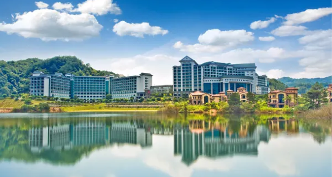 酒店坐落于万绿湖畔,青山逶迤,碧波微澜,泉水潺潺,鸟语花香