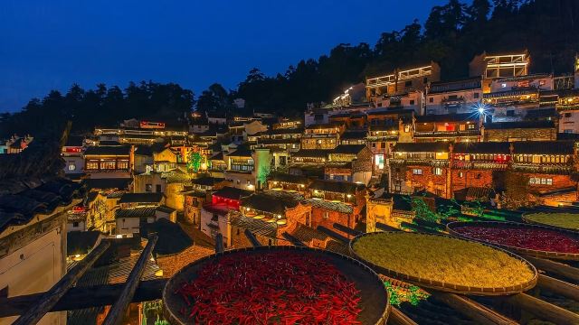 家家户户屋顶晒盘云集,绘就出一幅“晒秋人家”风情画。