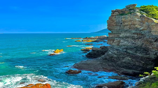 站在穿鼻岩上就可以看到终点沙滩,下了穿鼻岩靠着山边走会有断断续续的土路比较好走,如果靠着水边走刚开始也是乱石头比较难走,后面石头越来越小,也会比较好走。