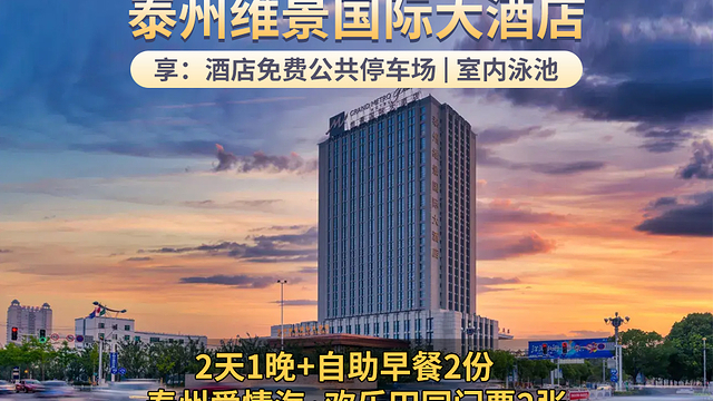 泰州维景国际大酒店1晚+双早+泰州爱情海欢乐乐园门票2张