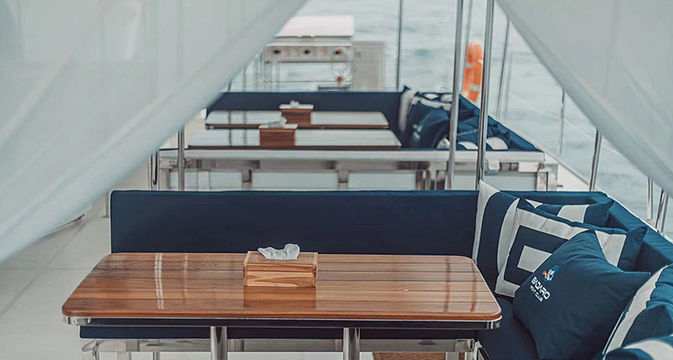 3)餐费:蓝高号巨型帆船上享用海上自助午餐; 早餐,出发码头提供茶、咖啡和饼干;