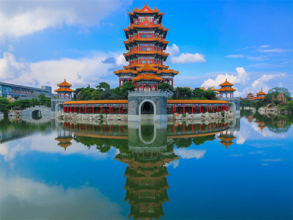 10:00:到达景区后,自行进入景区参观蓬莱仙岛、方壶胜境、瀛洲仙境、瀛洲书院、珍宝馆、十一面观音阁、玉佛寺、万方安和等。午餐可品尝当地特色海鲜宴(自理),午餐后,自由活动,可参观和平广场、八仙雕塑自由拍照。