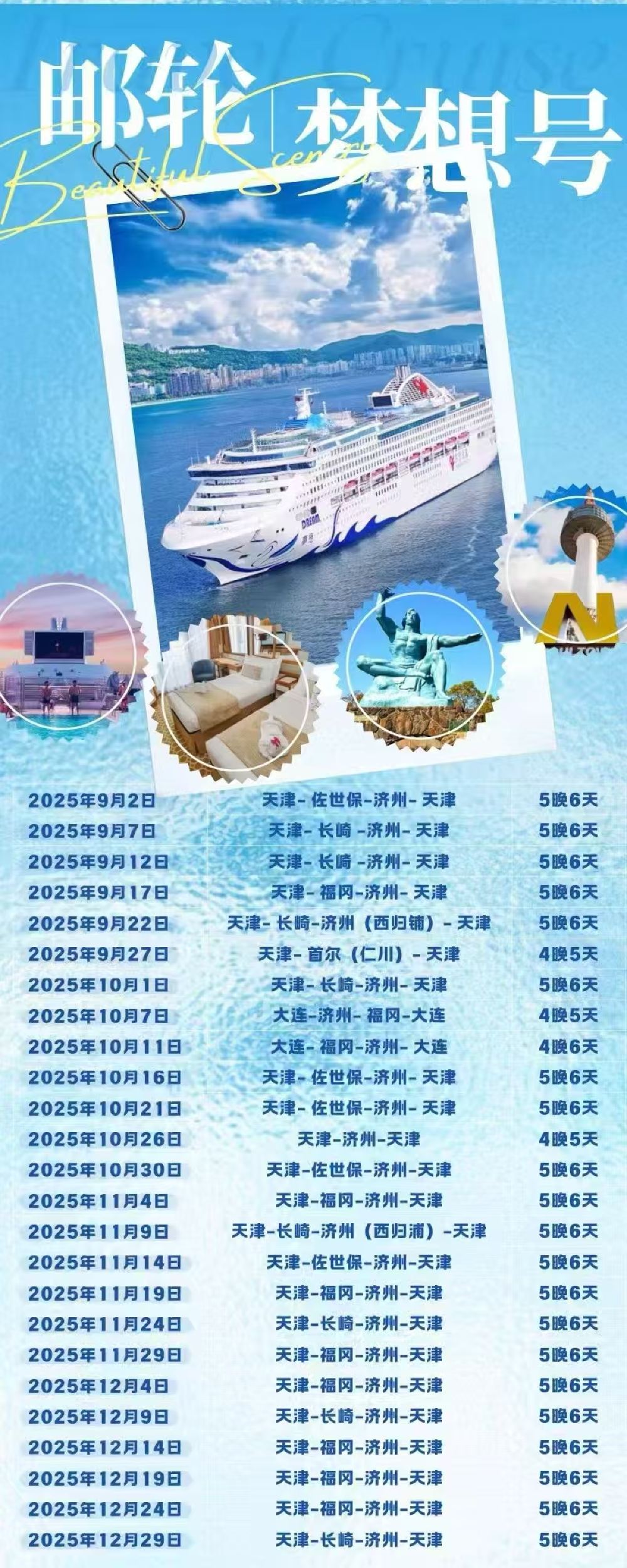 天津 东方成真梦想号 日本韩国 免 签【深度体验日本韩国】