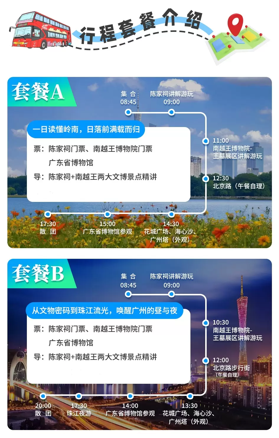 套餐A、B:一日游、一日游含夜游套餐——均需要8:50到陈家祠集合,广东省博物馆自行入内参观游览!