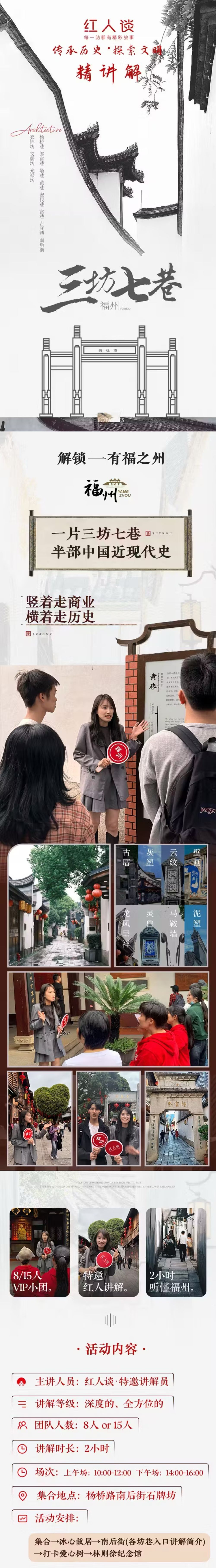 福州三坊七巷+林则徐纪念馆半日活动【坊巷精讲丨特邀达人讲解】【三坊七巷位于福州市鼓楼区南后街,是福州历史文化名城的重要组成部分,具有深厚的历史文化底蕴。】