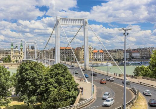 ▲ 伊丽莎白桥 (Erzsébet Híd),又称茜茜公主桥,是匈牙利首都布达佩斯的一座大桥,跨多瑙河,连接两岸的布达和佩斯。这座桥位于多瑙河布达佩斯段狭窄的地方,跨度只有290米。它得名于1898年被人暗杀的奥匈帝国皇后伊丽莎白·阿马利亚·欧根妮。今天,她的巨型铜像安放在这座桥的布达一侧小花园中间。