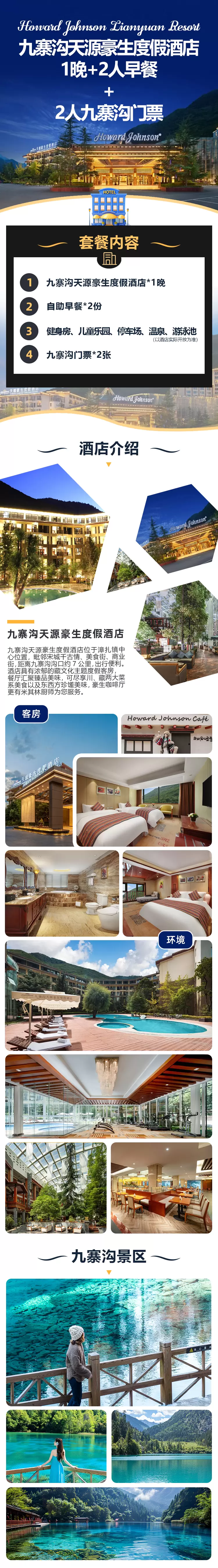 【酒店套餐】九寨沟五星级天源豪生度假酒店1晚+2张九寨沟风景区门票(含景区内观光车)+2人早餐