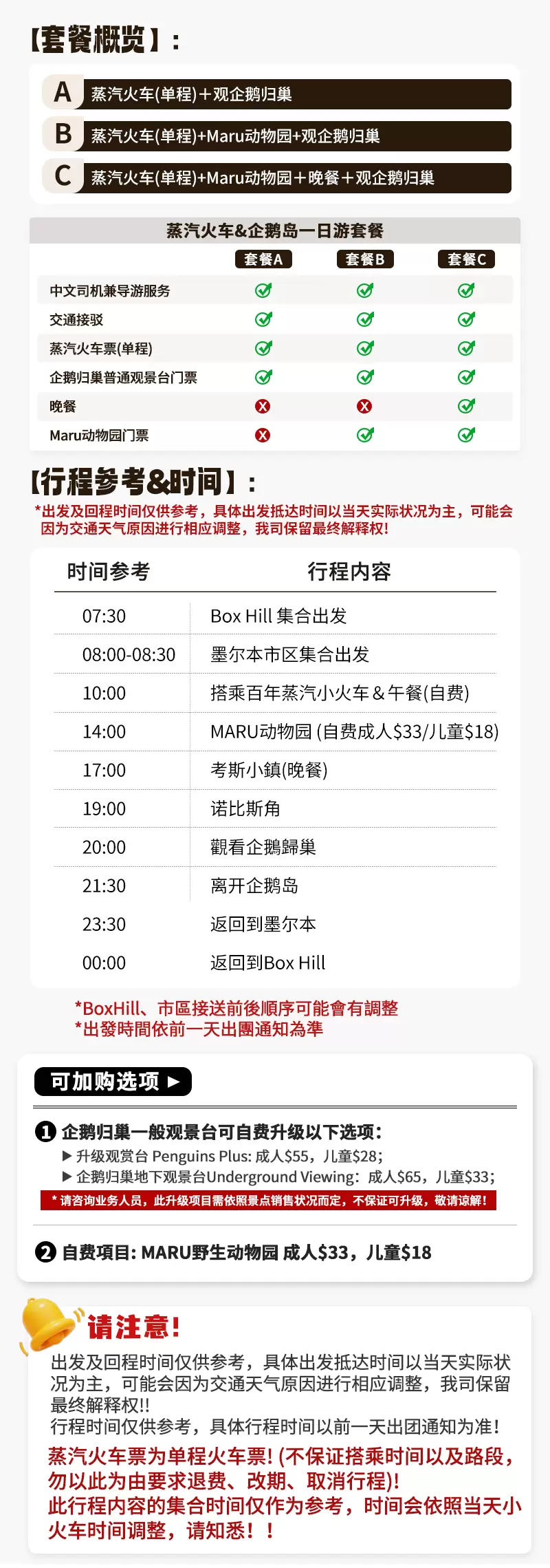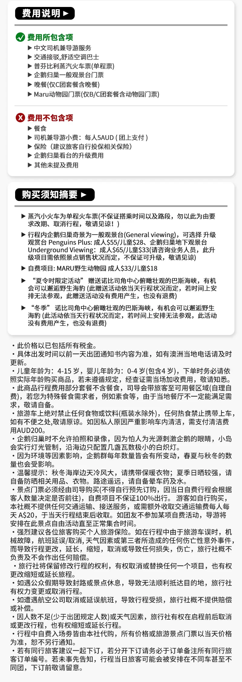 墨尔本普芬比利蒸汽火车+玛璐考拉和动物公园+菲利普岛一日游【【看神仙小企鹅结队归巢,体验森林穿梭之旅】】