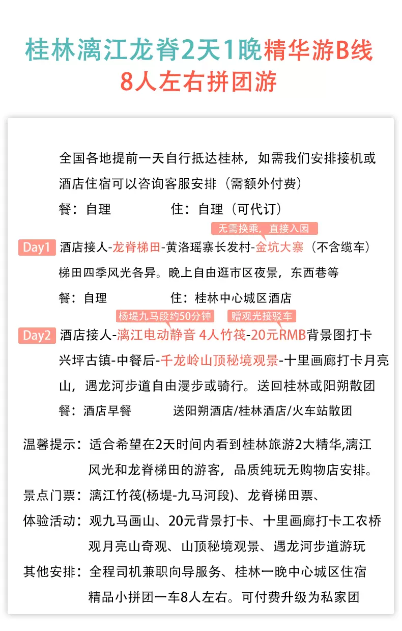桂林漓江风景区+遇龙河+龙脊梯田二日游【多套餐可选、品质小团真纯玩产品、两天时间让您玩遍山水精华】