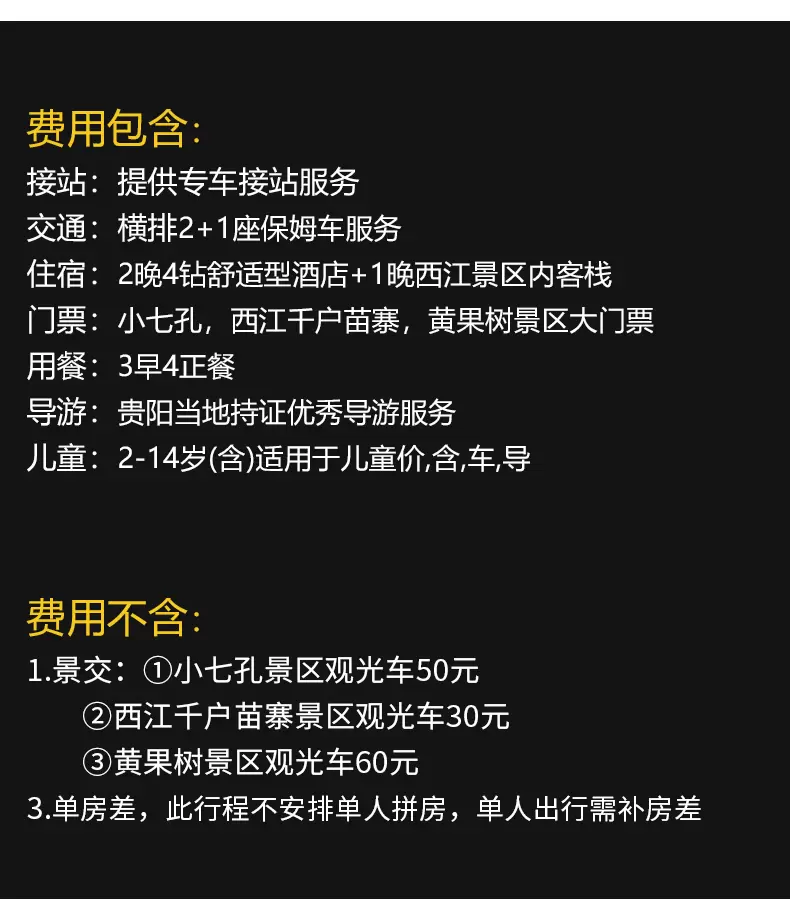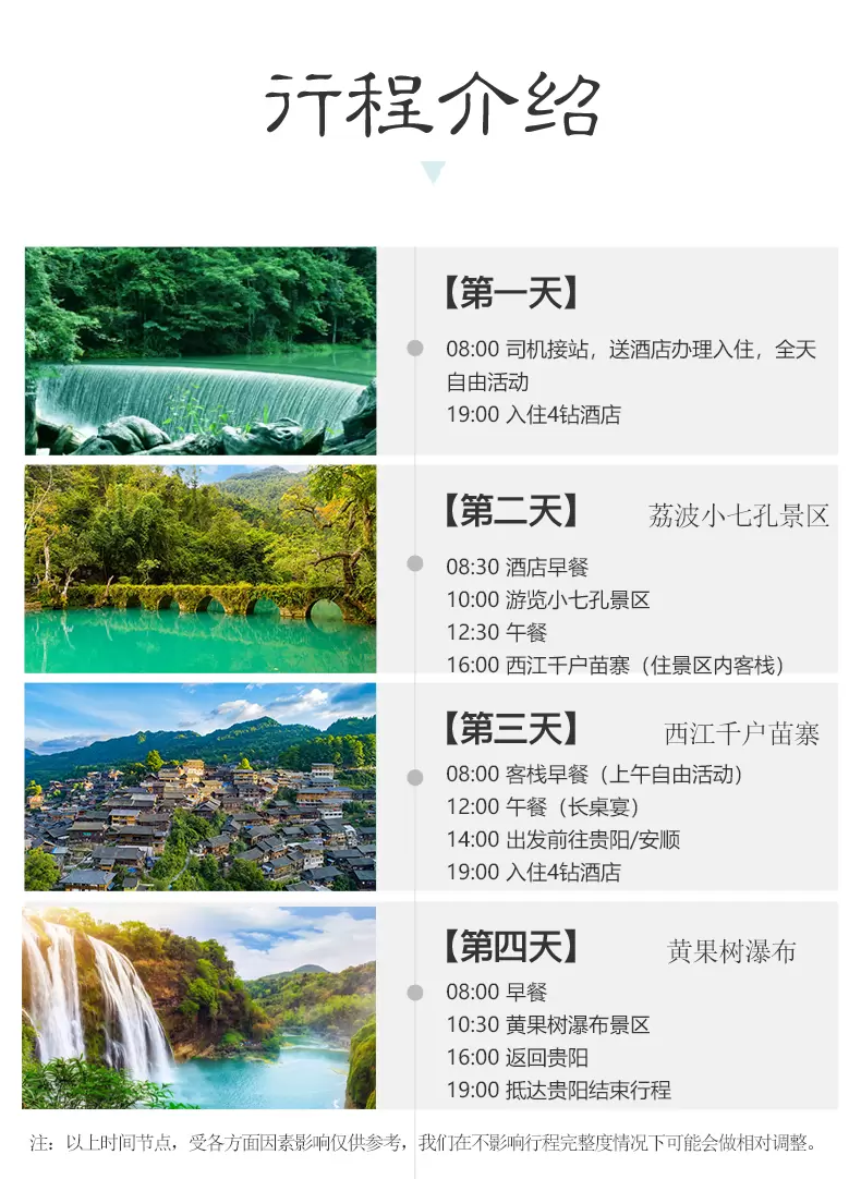 荔波小七孔景区+西江千户苗寨+黄果树景区四日游【更适合老人/小孩的精品团】