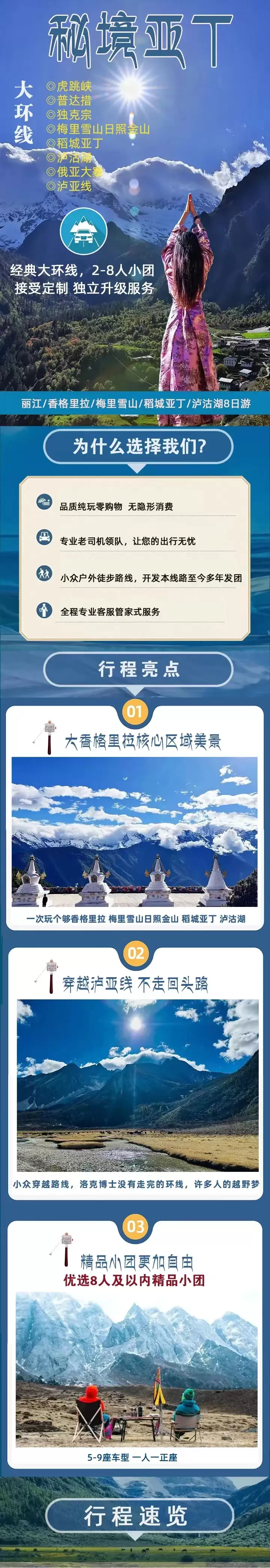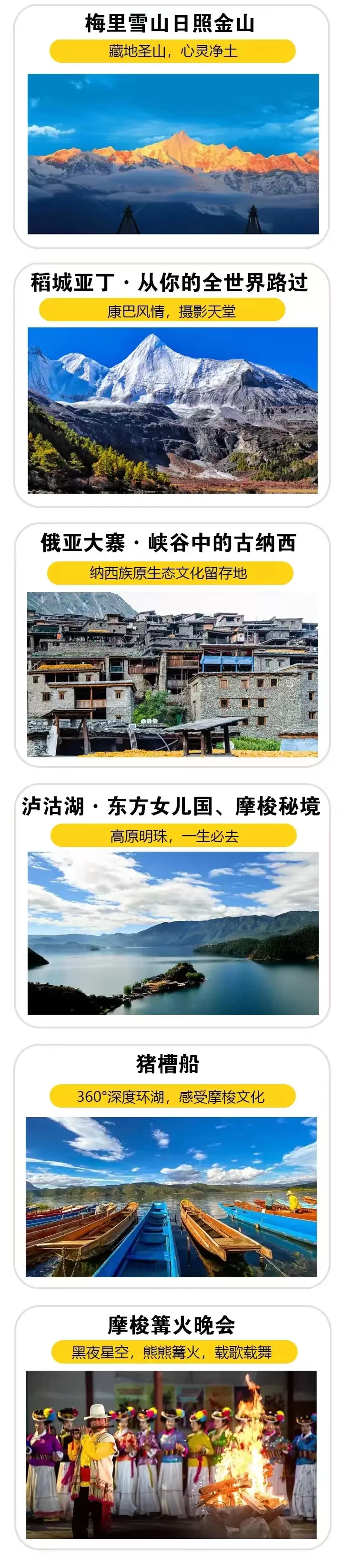 迪庆梅里雪山观景台+稻城亚丁+泸沽湖+虎跳峡(香格里拉段)六日游【梅里泸亚环线日照金山徒步亚精品小团纯玩】