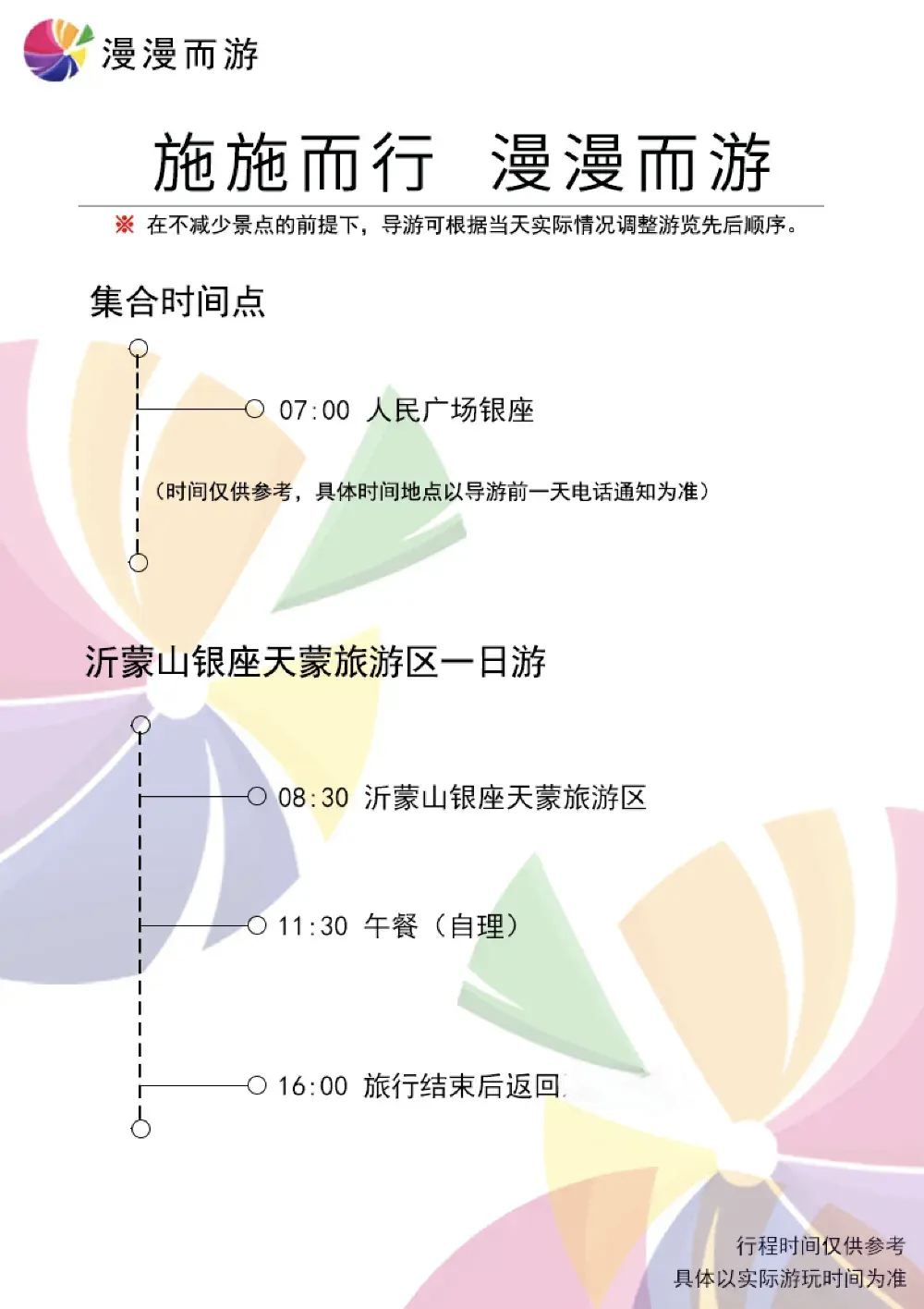 早7:00人民广场银座集合,乘车前往费县参观【沂蒙山银座天蒙旅游区】,参观沂蒙山小调诞生地---【沂蒙山小调活态博物馆】,主要建有抗大一分校文工团旧址、沂蒙精神馆、沂蒙历史馆、沂蒙风俗馆、沂蒙物产馆、沂蒙声音馆、沂蒙味道馆和沂蒙人家等。