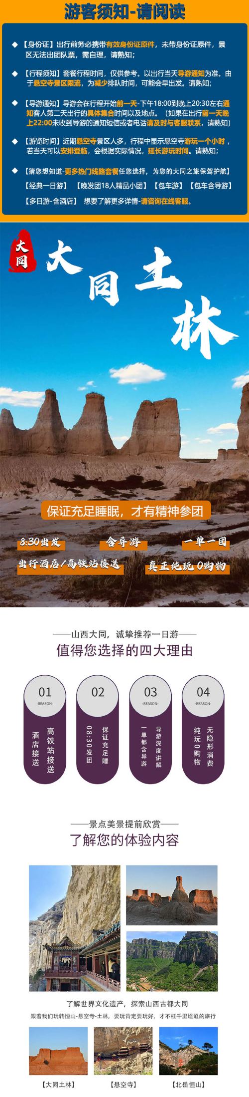 恒山+悬空寺+大同土林【实惠私家团+独立导游+酒店上门接】【[导游上门接]大同市区范围内,导游+司机酒店上门接;】