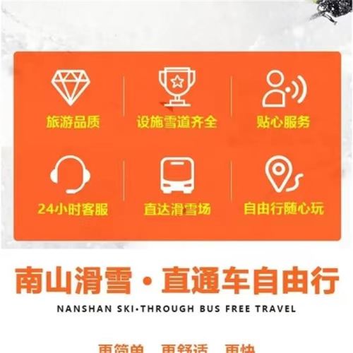 北京南山滑雪场一日游【可选游玩时长 专业领队·含雪票 雪具】【一站式服务:专业领队,享受景区旅行社快速通道,专业客服为您解答。】