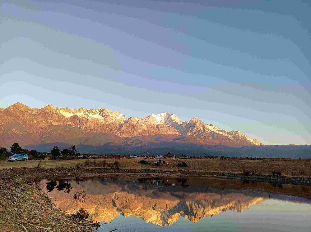 ▲ 甘海子,一个高原草甸,是进入玉龙雪山景区的起点。 这里是一个巨大的观景台,可以拍摄玉龙雪山的全景倒影