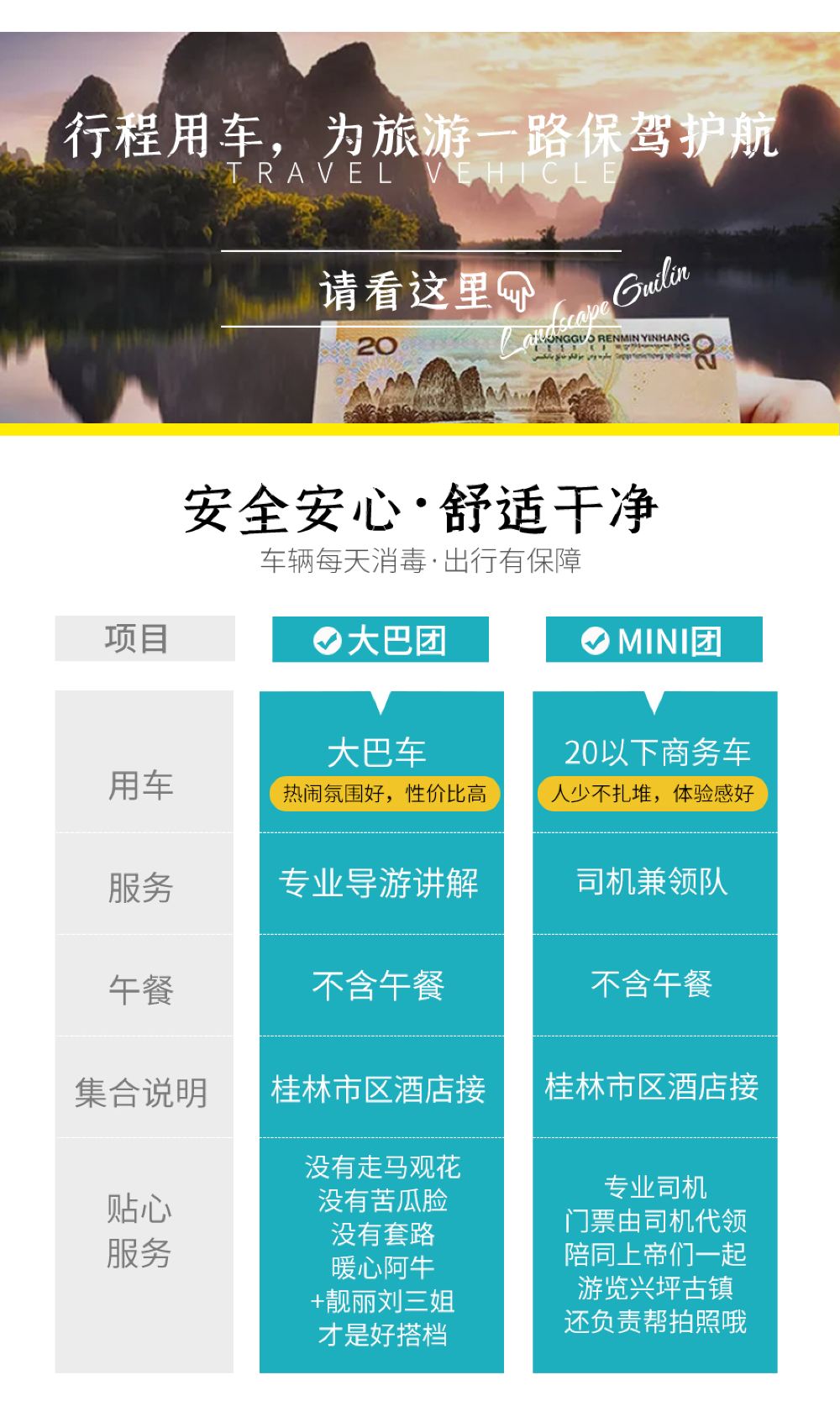 十里画廊/月亮山/兴坪古镇/20元背景为免费景点,若旺季堵车严重、时间来不及等情况则不去,免费赠送项目不去无费可退。