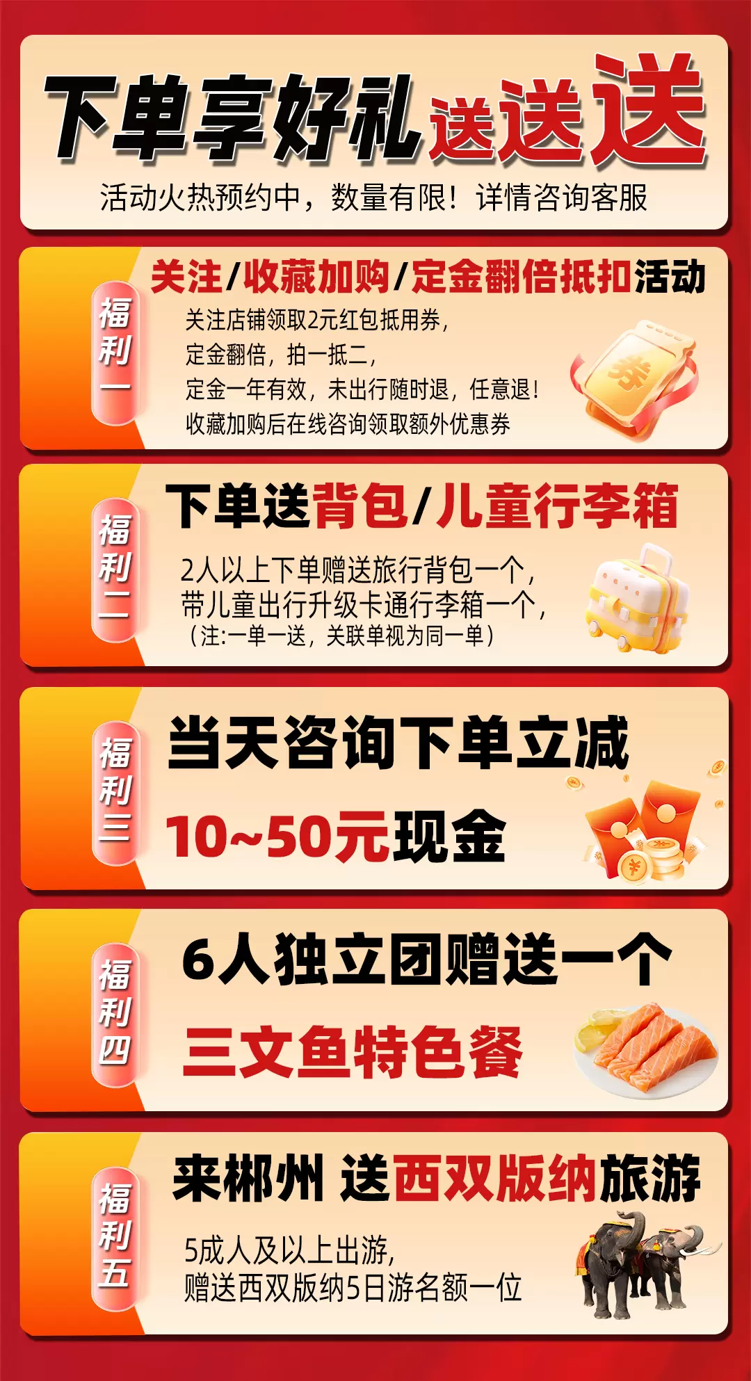 主打郴州品质精品纯玩小团。2人起,天天发团。100%纯玩不购物,无任何套路,还原旅游本质。