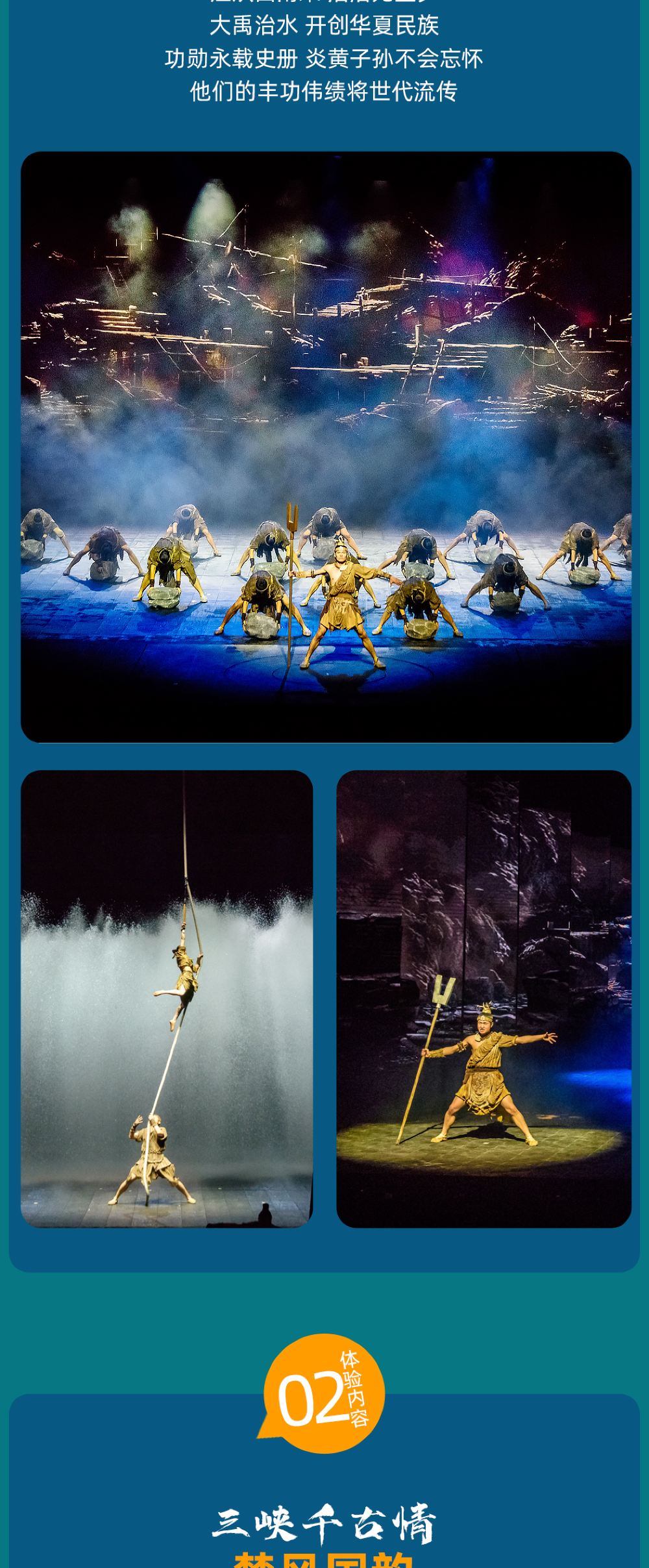 三峡千古情景区一日游【含演出票·可选贵宾席·直通车·含导游】【24小时售后为您保驾护航!景区直通车直达景区不绕路。东站往返免费接送。游玩时间充足,比自由行更自由】