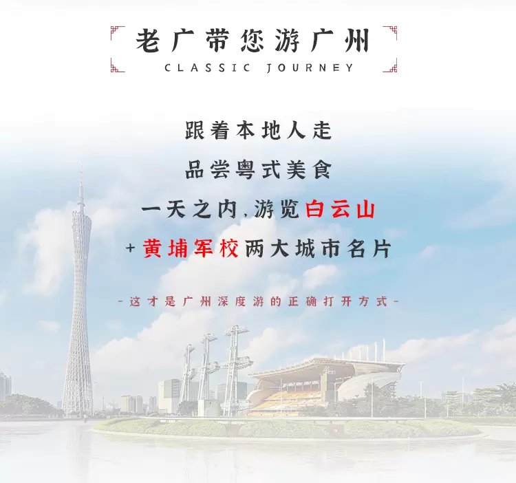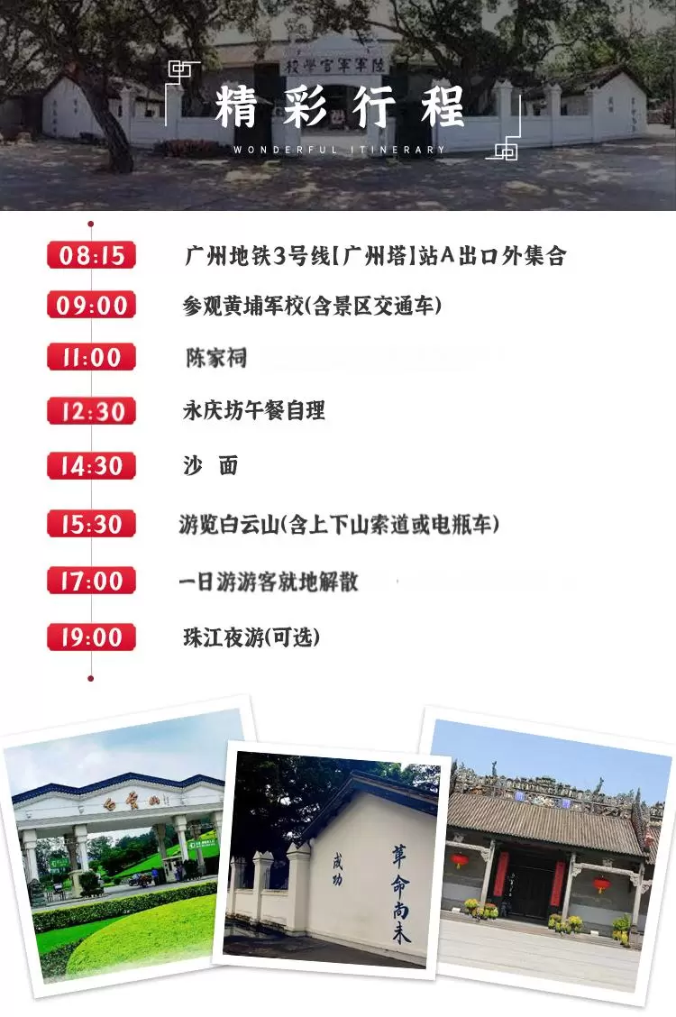 馨提示:此线路3人成团,如出行前一天仍未成团,工作人员于傍晚时分统一致电告知游客,进行改期或无损全退处理,下单请留意!1、【陈家祠】逢周二闭馆,门票导游现退。2、不足7人则采用司兼导的方式;儿童占座,请勿漏报。3、珠江夜游以当天游轮公司安排为准,不指定码头。4、标注“自由活动”的景点仅为推荐景点,可根据个人爱好自行前往参观。5、集合:请自行前往【海心沙】站-A出口集合