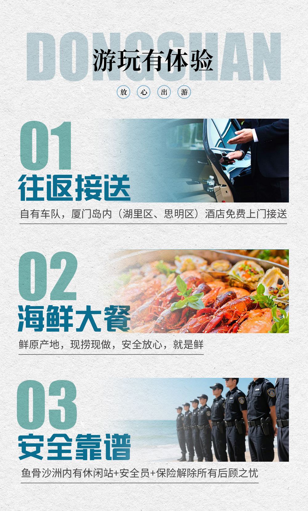 从厦门出发:漳州东山岛+鱼骨沙洲+苏峰山+南门湾一日游【[舒心畅玩,无忧出行]高品质团,纯净旅游;优选服务专业车队,实时定位,出行安全有保障。】