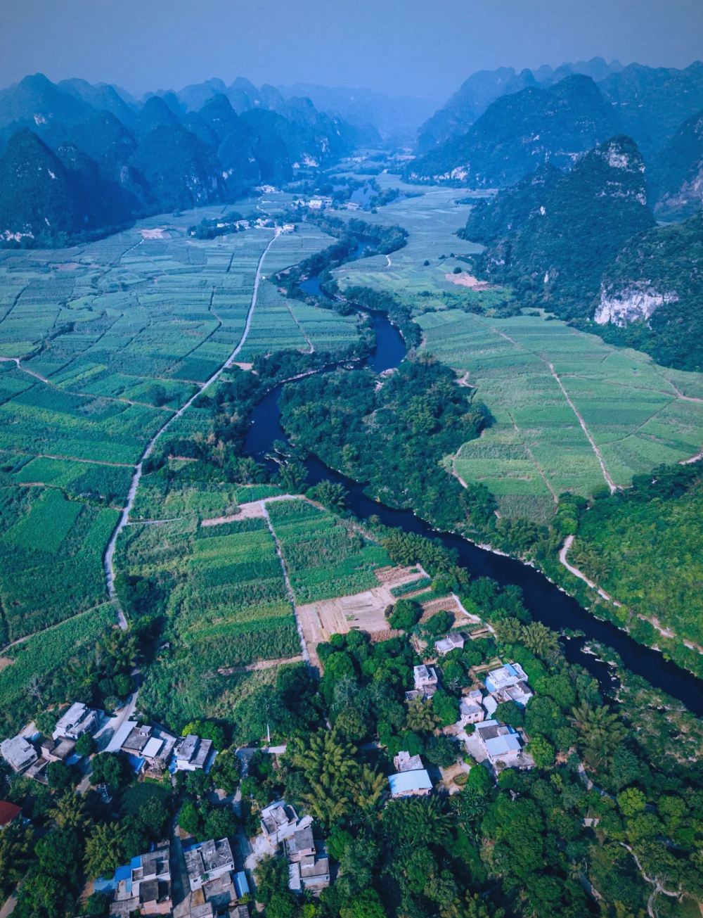 ▲ 堪称“小桂林”,乘竹筏顺流而下两岸奇峰、稻田、翠竹相映成趣,可以骑行游览也可以坐竹筏观赏。