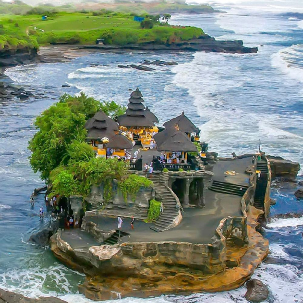 这座海滨寺庙建于16世纪,坐落在海边巨石上,日落时分尤为壮观。涨潮时寺庙与陆地隔绝,退潮可步行抵达。海神庙是巴厘岛六大圣地之一,供奉海神,游客常在此祈福。