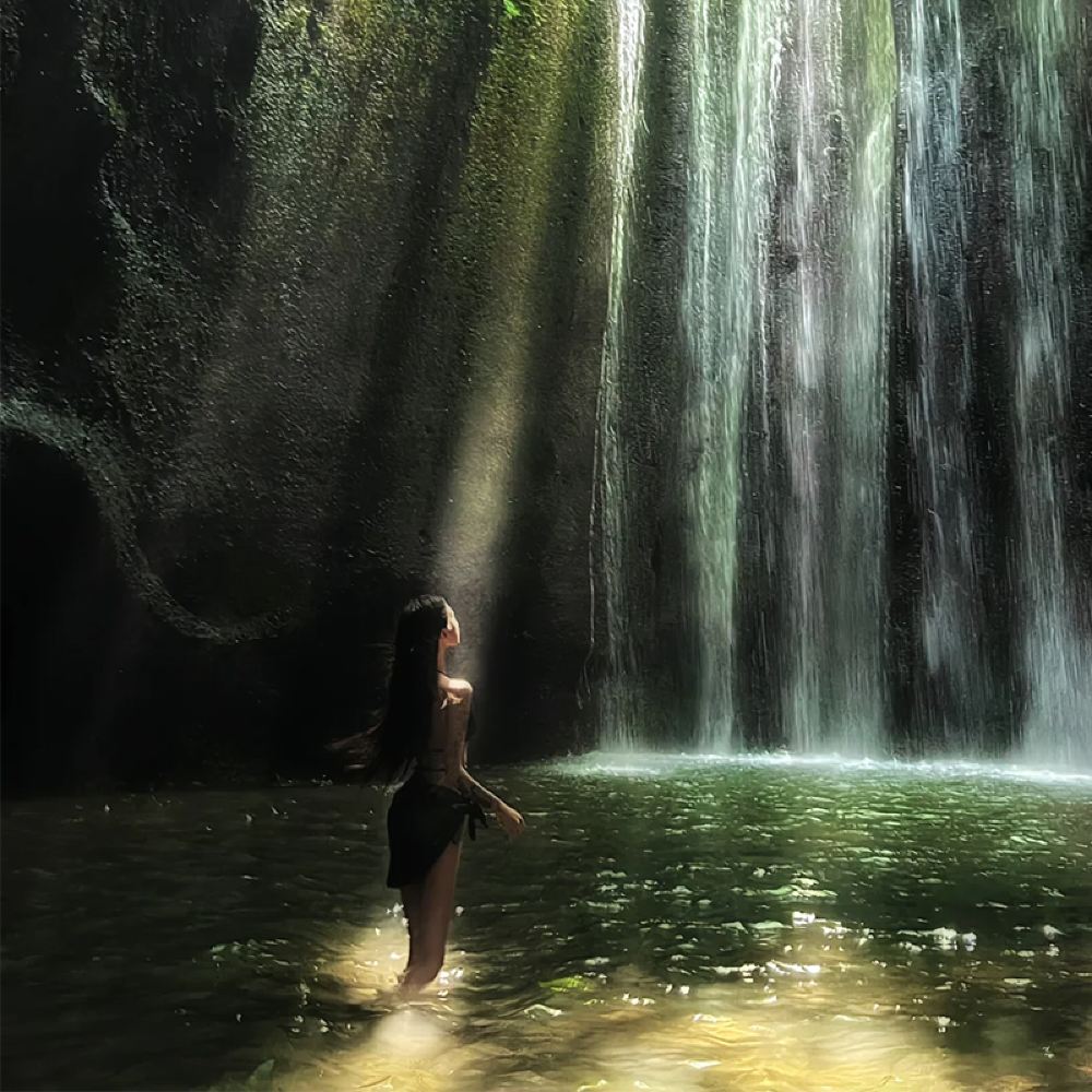 隐藏于洞穴中的秘境瀑布,阳光透过缝隙洒落,形成梦幻光束。需短途徒步抵达,池水清澈凉爽,适合避暑和拍照,相比其他瀑布更为幽静小众。