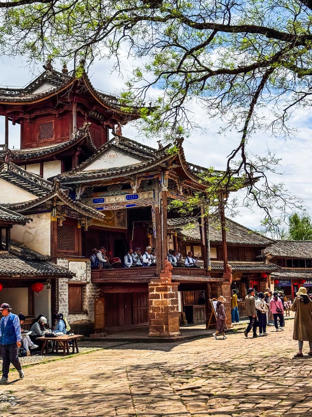 ▲ 古戏台:清代木质雕花,飞檐翘角如展翅凤凰,仍定期上演白族传统戏剧,戏台飞檐浸染暮色时,恍若千年马帮的篝火未熄。