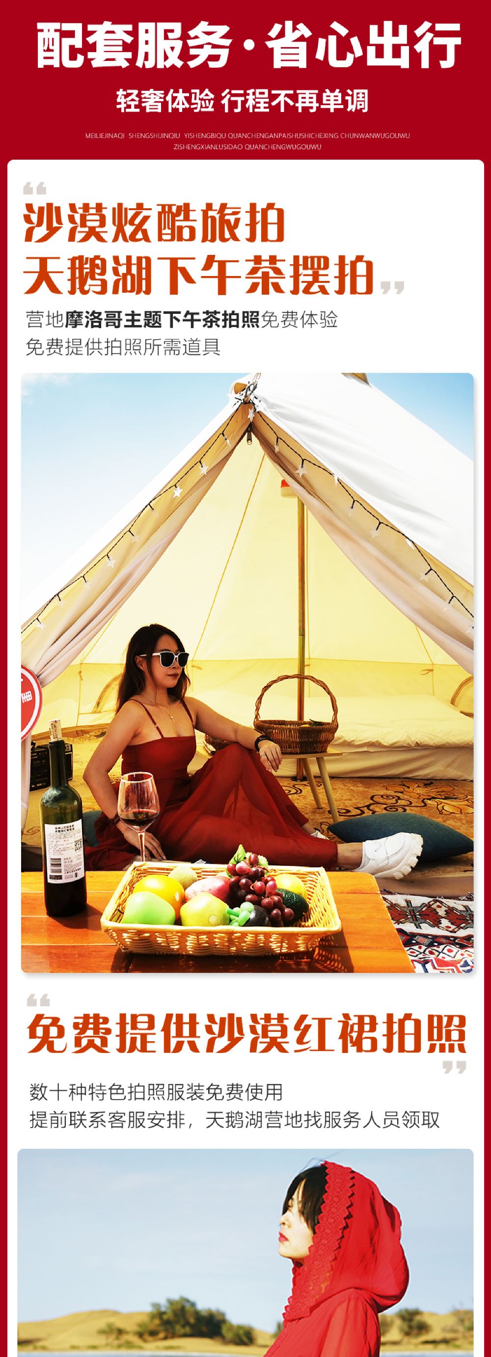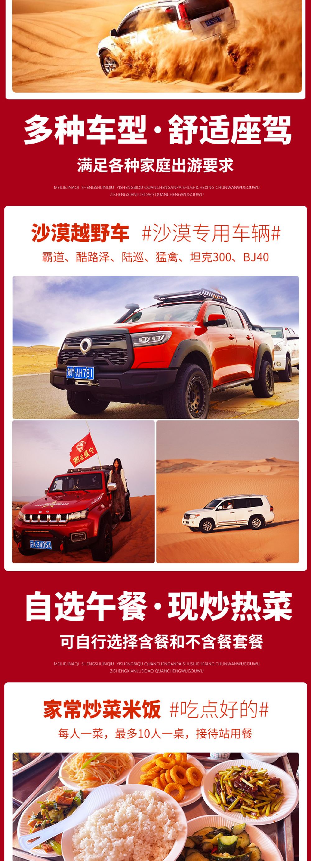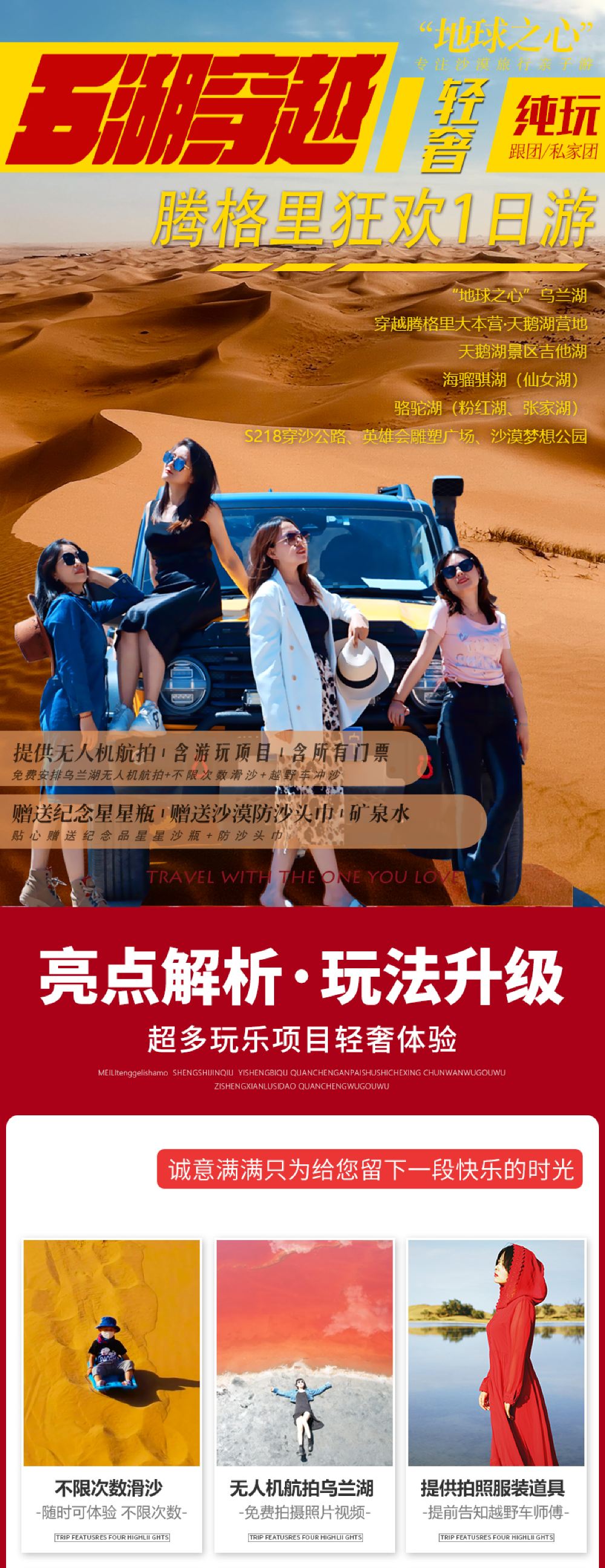 【五湖穿越】腾格里沙漠+乌兰湖【赠送乌兰湖航拍+下午茶摆拍】【[体验丰富]越野冲浪+无限滑沙+网红下午茶红裙摆柏、沙漠绿洲小众秘境,是一场视觉与肾上腺素的双重冒险】