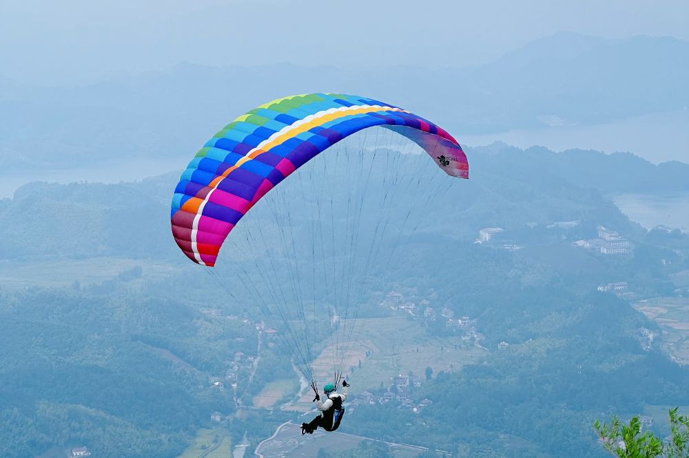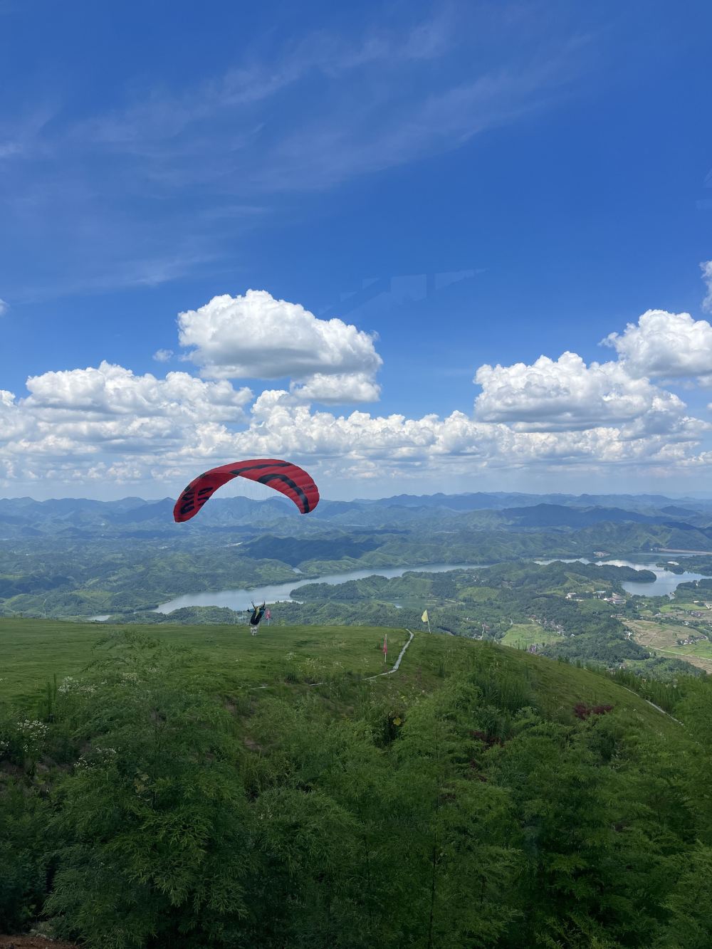 浙江安吉驭风铜锣山飞行营地+安吉滑翔伞体验+专业教练一带一 【基地风景:位于天目山北麓,起飞场面对老石坎水库,镶嵌在丘陵间,可远眺60km的远山。】