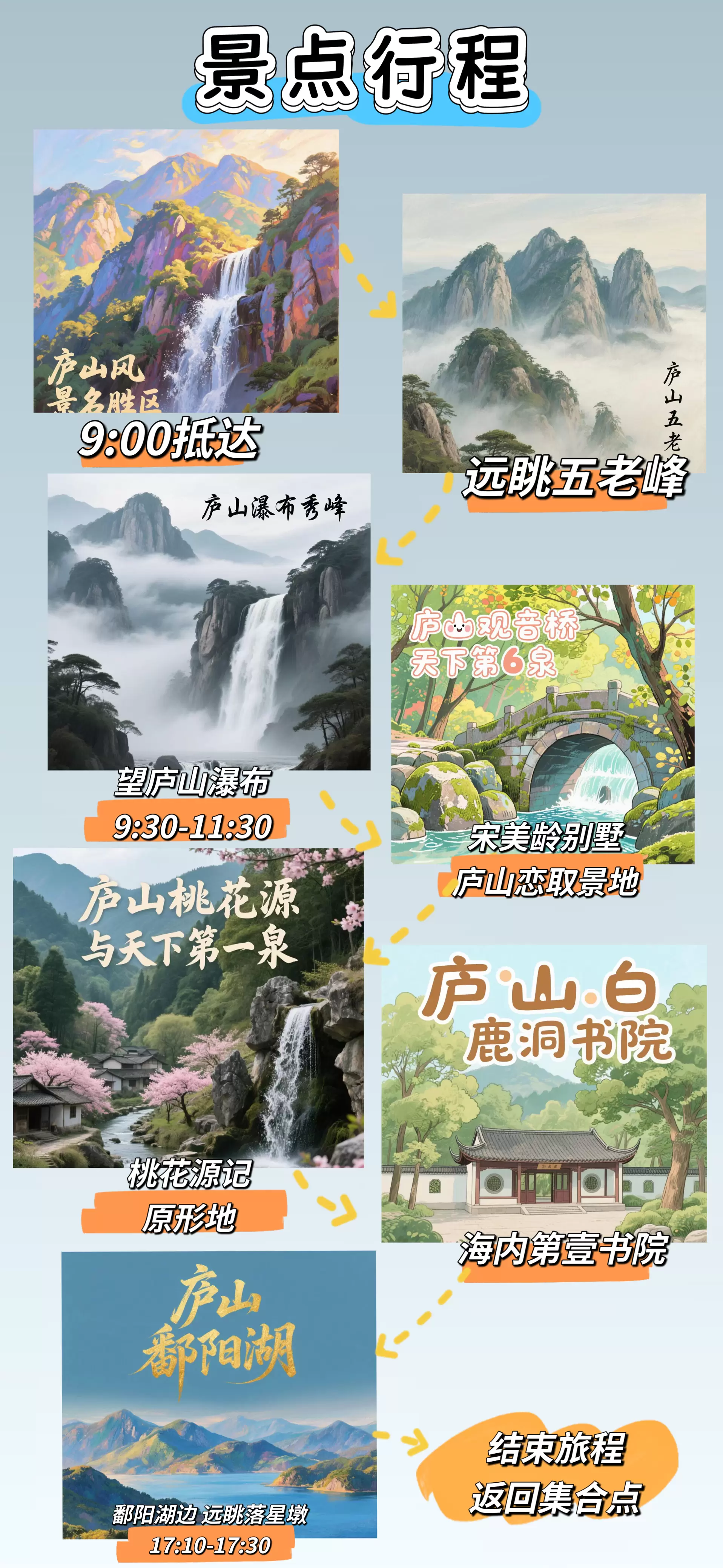 庐山风景名胜区一日游【南昌巴士去庐山一日游,纯玩不爬山李白庐山瀑布,桃花源,旅游管家讲解· 写诗地语文课】