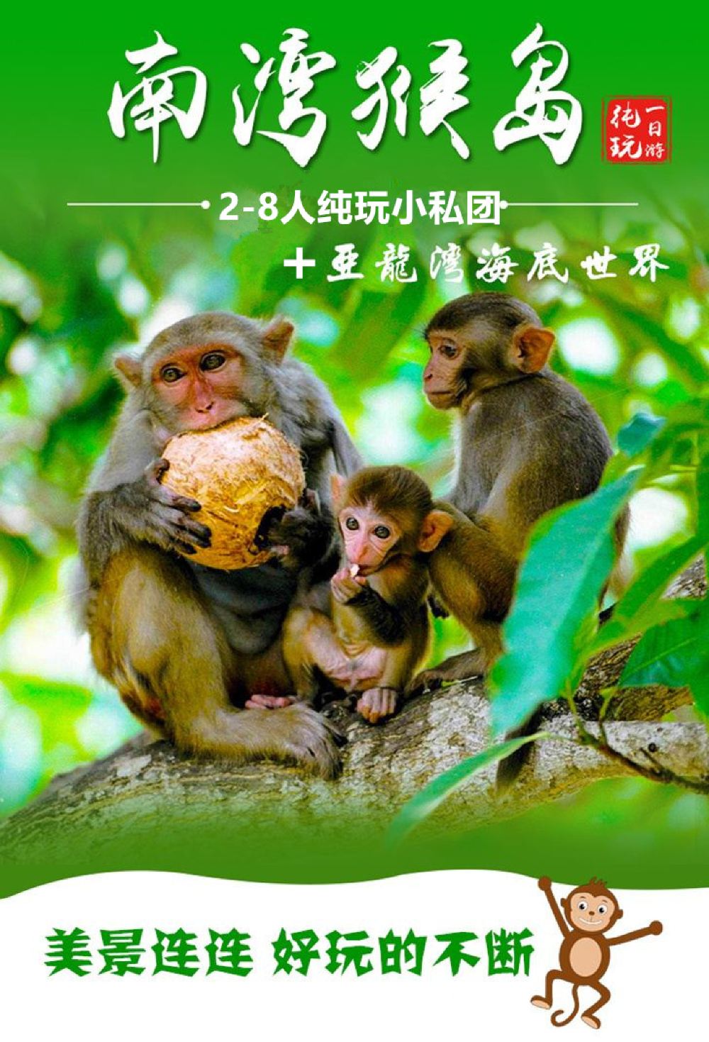亚龙湾海底世界+猴岛公园一日游【2-8人团畅游海底猕猴童趣】【拥有中国迷人的海湾、沙滩,而附近海域拥有世界上软珊瑚族群热带鱼类;】