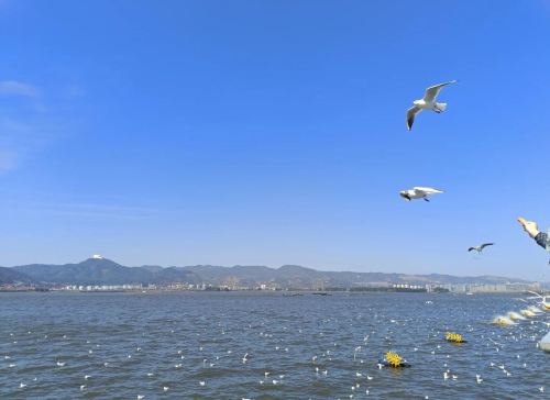▲ 滇池海埂公园漫步海埂大坝,冬季限定(11月-3月),与西伯利亚海鸥亲密互动,感受高原明珠的灵动之美。