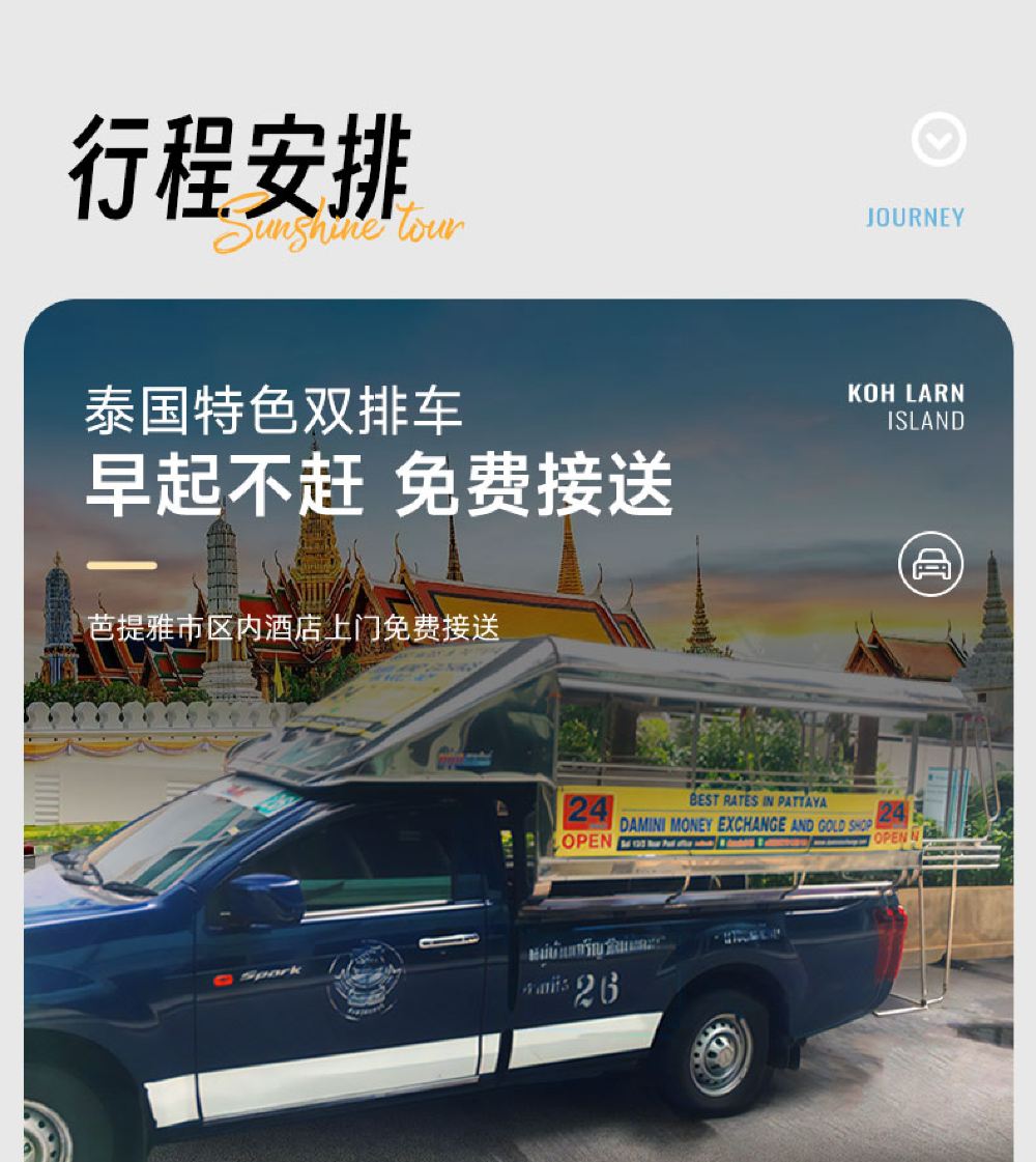 泰国芭堤雅格兰岛一日游/出海浮潜深潜拖曳伞摩托艇中文导游【[优质服务]中文导游,跟拍,专业客服,快速确认、提供芭提雅市区往返接送服务】