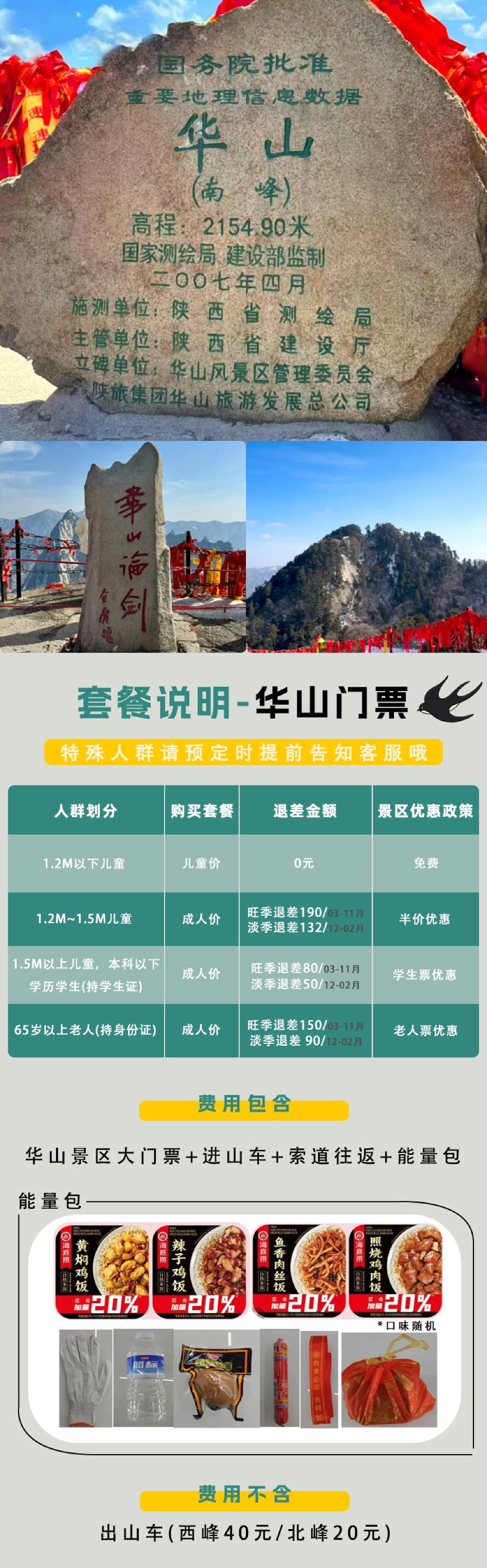 因华山出山车我们无法购买,需要您现场自行购买,价格已在售价中减去。