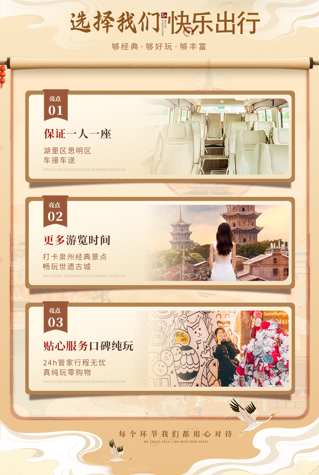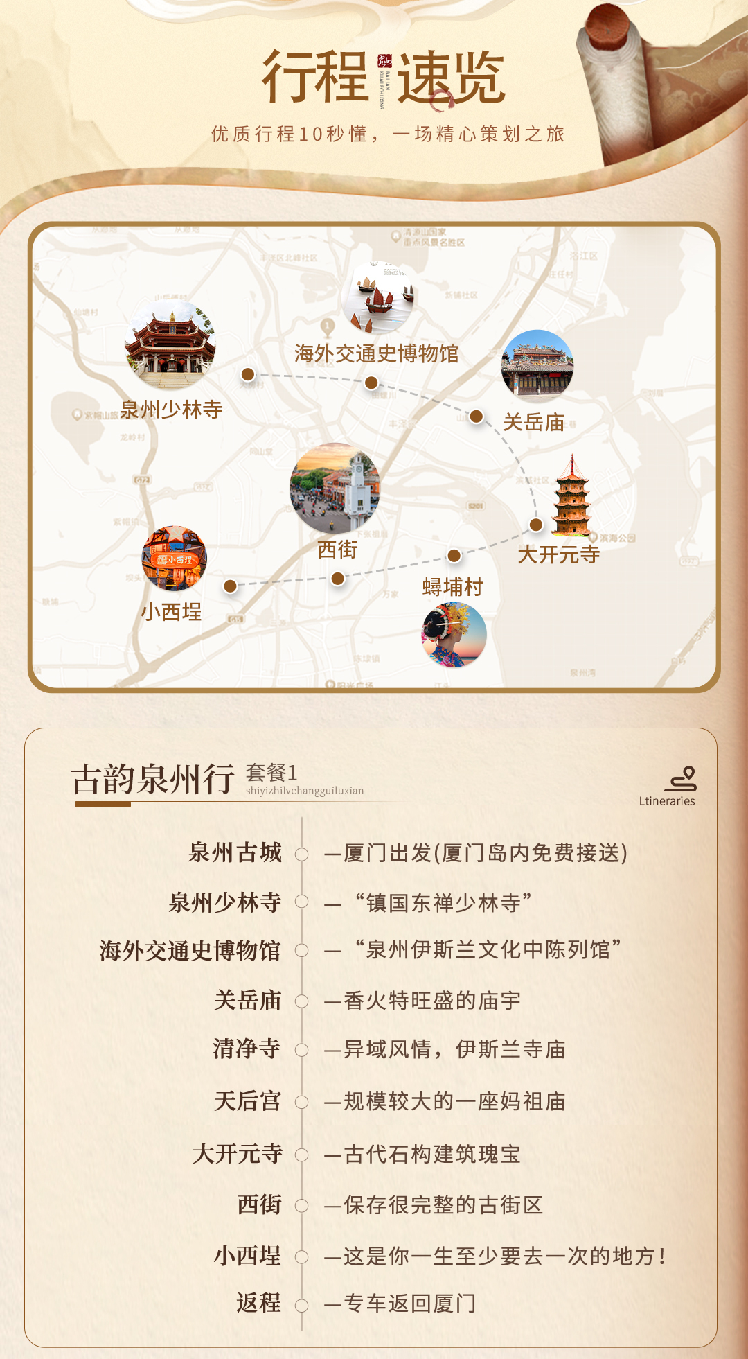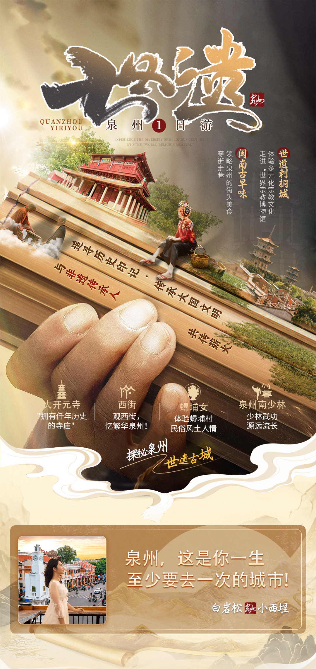 泉州打卡《春色寄情人》拍摄地开元寺+西街+洛伽寺+黄金海岸+中山路+男女主家私家团一日游可选崇武古城