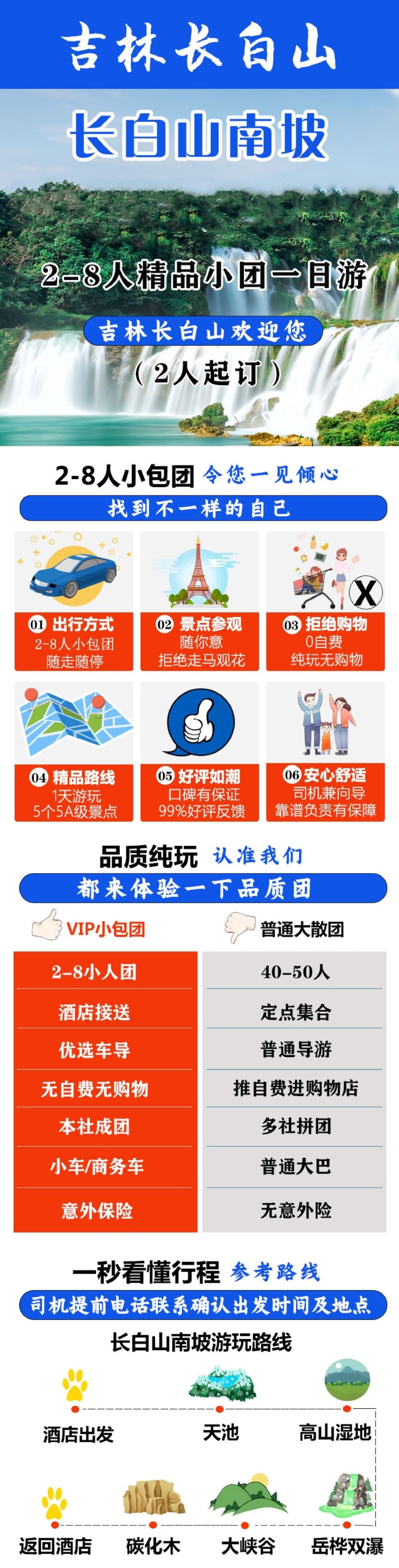 吉林白山长白山南坡景区一日游【万达鲁能上门接送2-8人小包】【南坡每天限量1500张,需要专门抢票人员提前7天抢购, 80%概率可以抢到,抢不到可以全额退款。】
