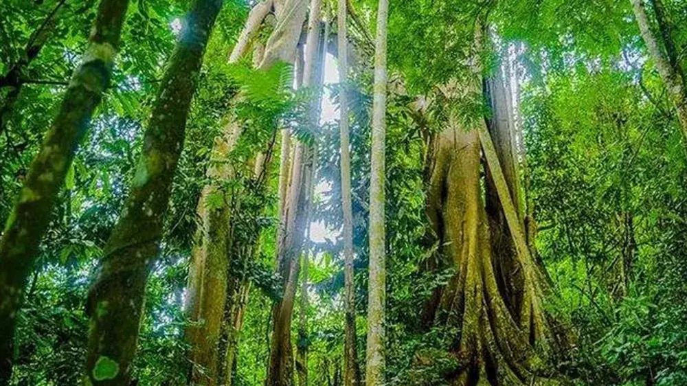 ▲ 闯入热带雨林的“巨人”世界,参天大树遮天蔽日,绿意盎然,每一步都踏在厚厚的落叶上,仿佛大自然的心跳。抬头仰望,阳光透过茂密枝叶洒下斑驳光影,犹如进入绿野仙踪在与古老时光对话。