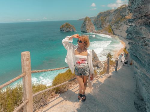 ▲ 精灵沙滩以其形似霸王龙的悬崖而闻名,提供白色沙滩与碧蓝海洋的壮丽全景视野。这里是努沙佩尼达岛**标志性的景点,也是拍照打卡的**之地。