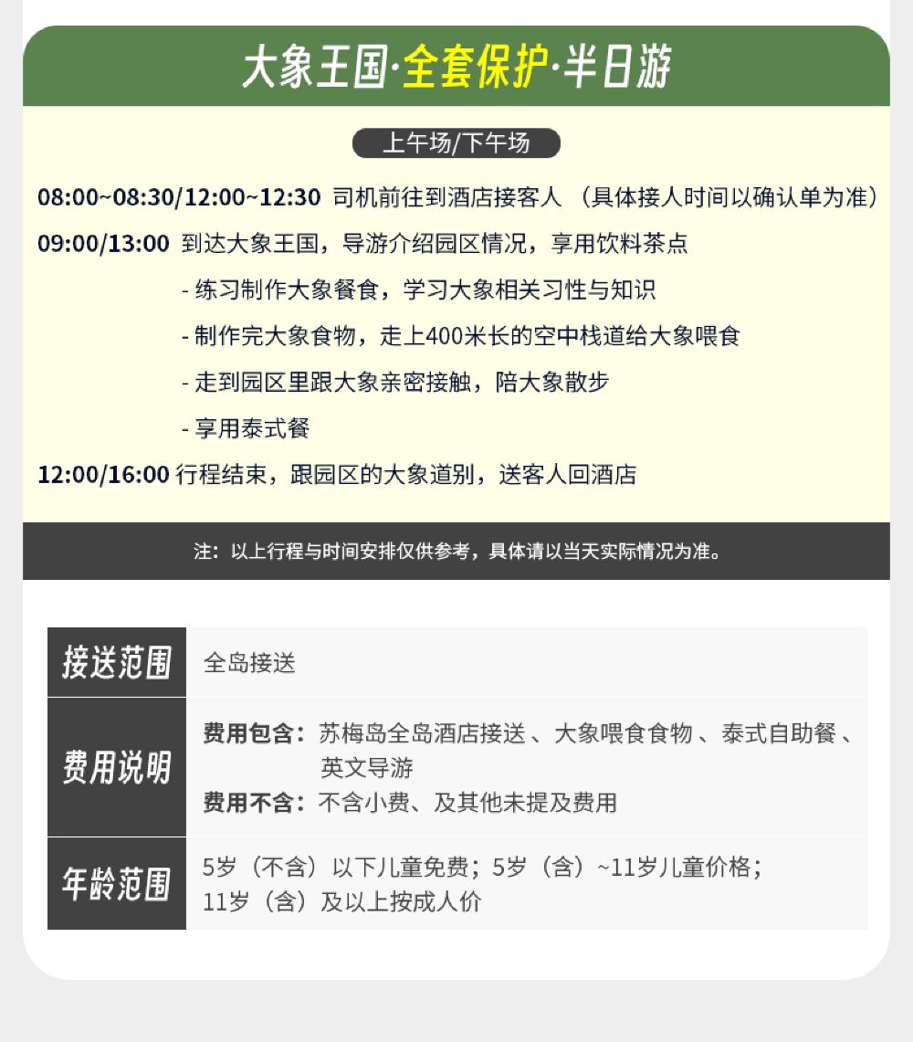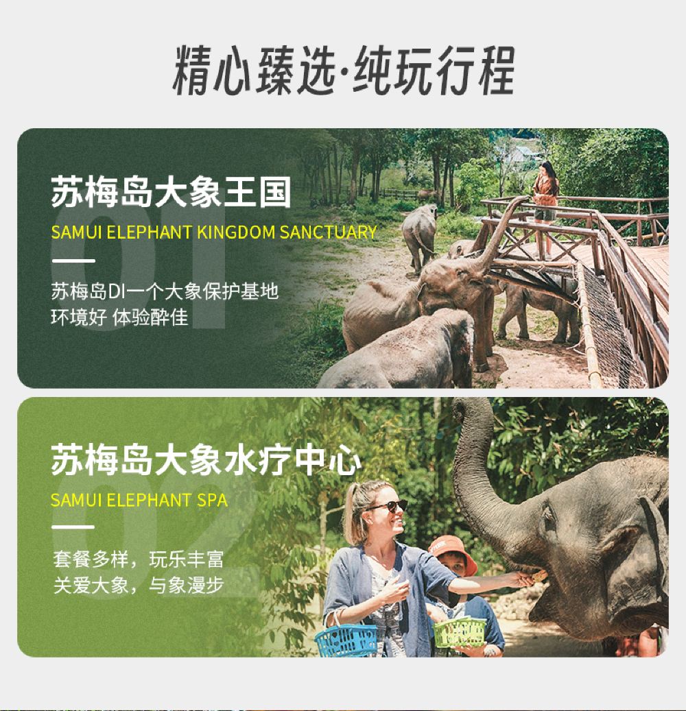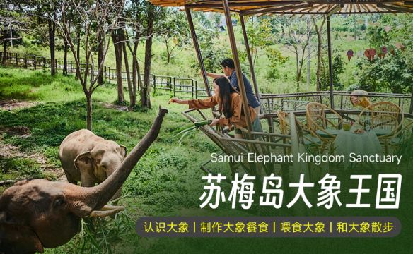 泰国苏梅岛大象王国一日游【公益象园 全岛酒店接送 英文导游】【救助大象之旅,拒绝骑大象,人与自然和谐相处】