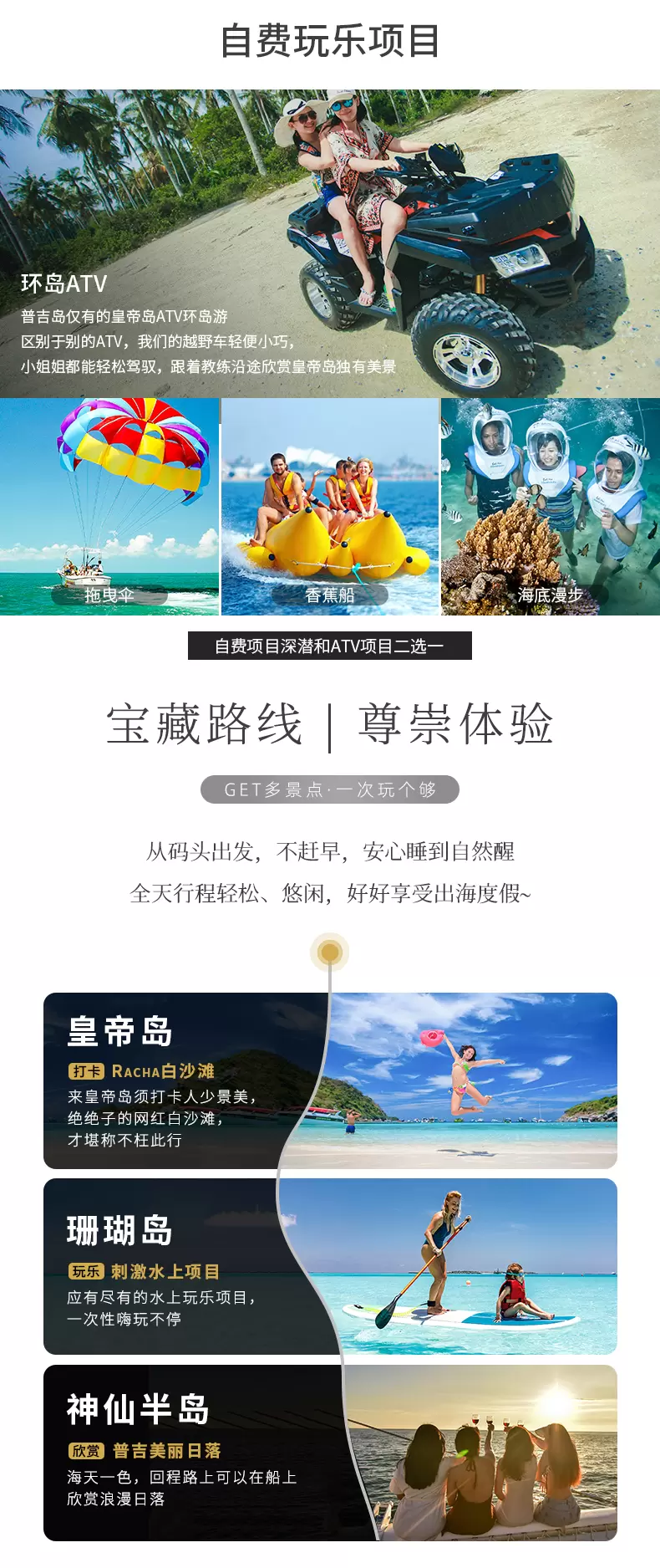 【星球七号|白钻号|曼威号|海洋之星号】 VIP小团普吉岛一日游皇帝岛珊瑚岛豪华帆船 中文导游 酒店接送